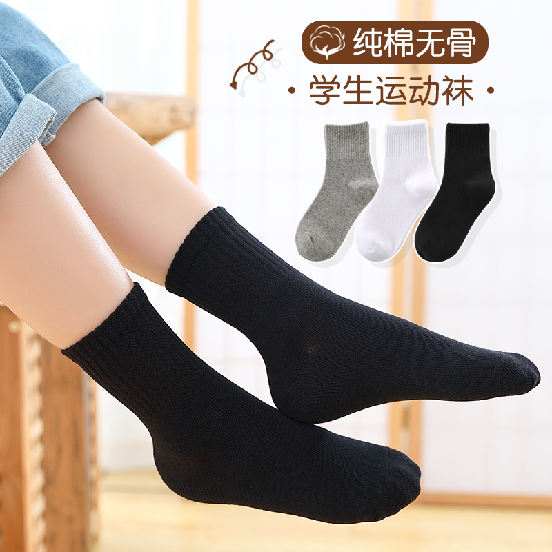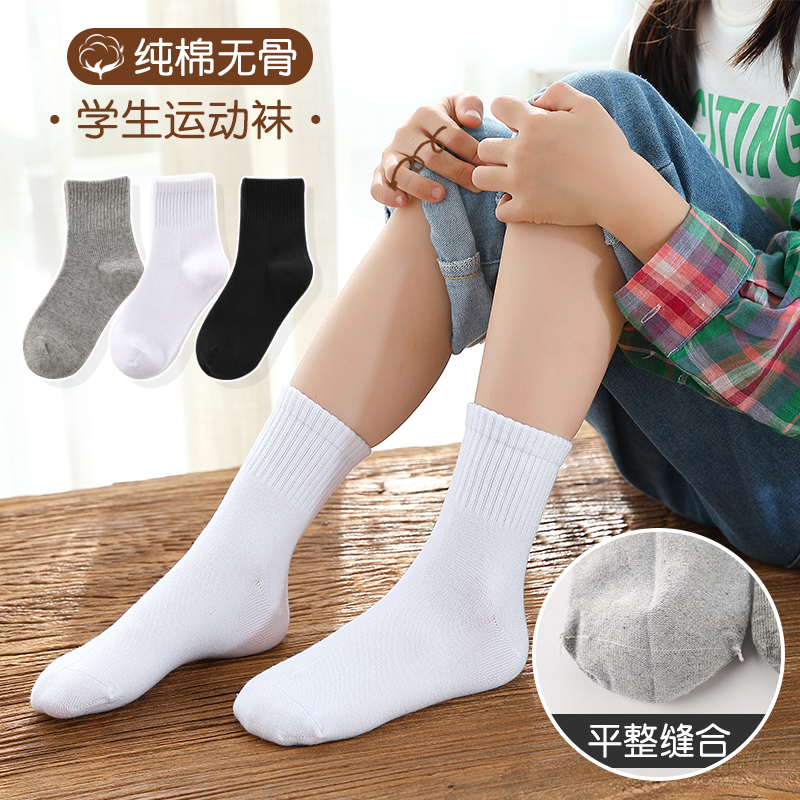 Children's white socks pure cotton spring and summer boys and girls students white socks middle tube sports socks boys middle and big children thin socks