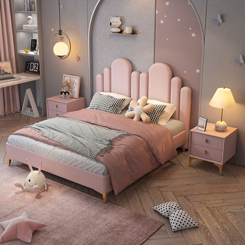 Children's girl leather bed light luxury girl 15m bed modern light luxury princess bed creative cartoon boy 12m