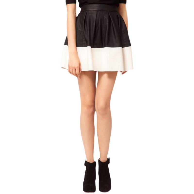(Special stock)ASOS black and white color leather A-line skirt Design sense short skirt High waist skirt Mini hot girl