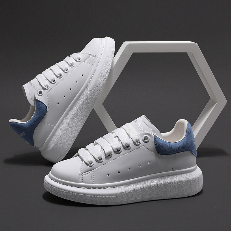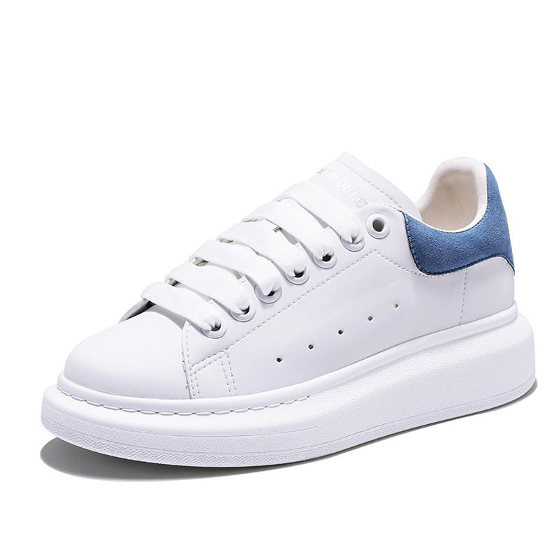 Smog blue McQueen white shoes women's 2021 new thick-soled platform shoes with heightened lace-up mid-heel casual shoes