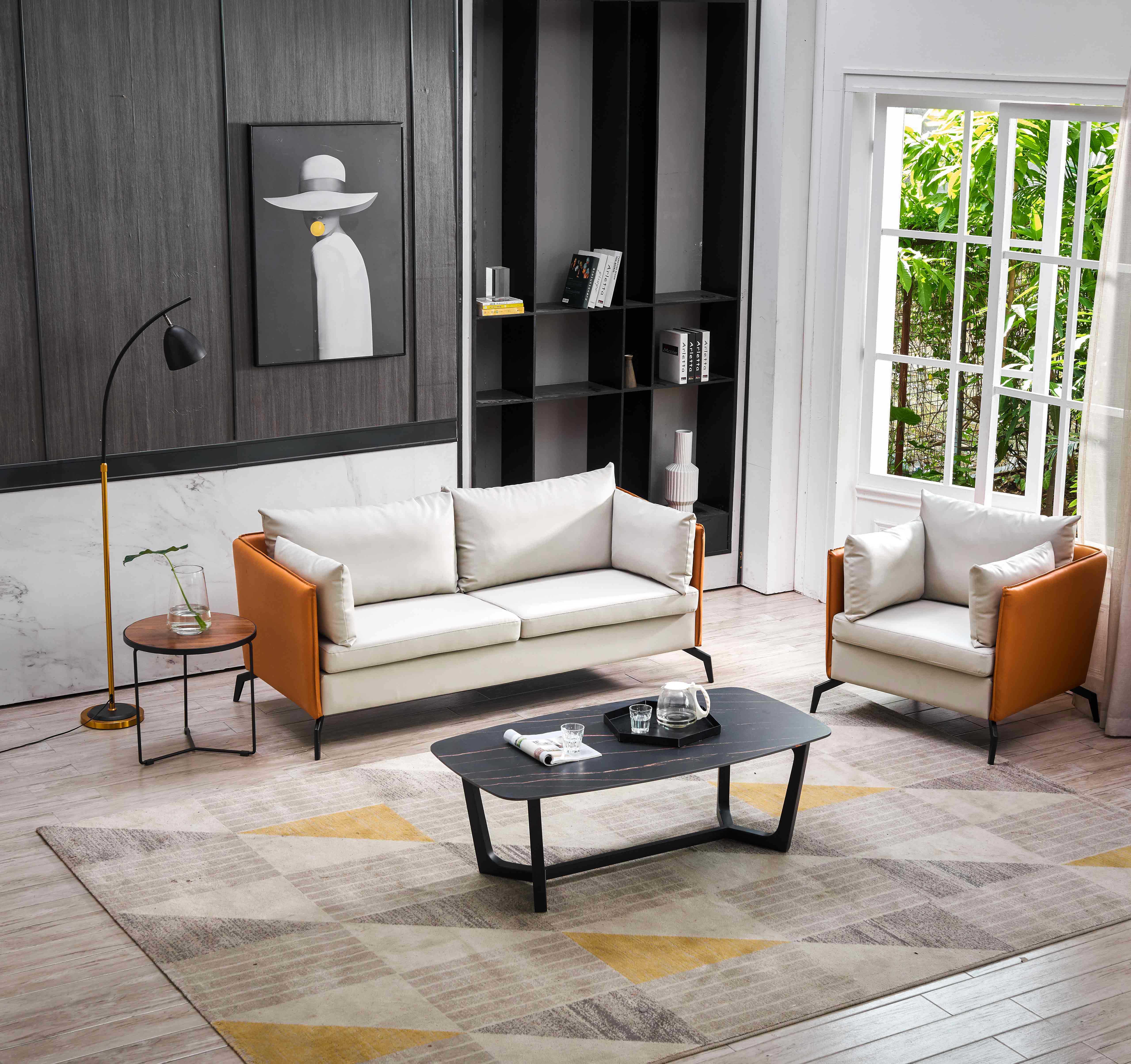 Office sofa coffee table combination set simple reception business hotel lounge area leather single three people