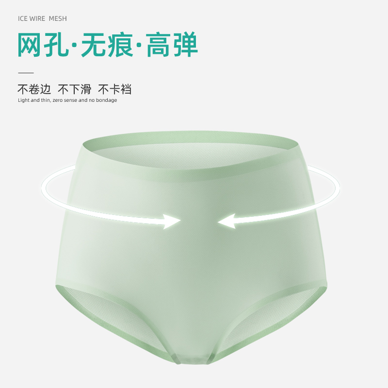 Ice silk underwear women's summer thin section large size 200 catties fat mm high waist seamless breathable cotton crotch antibacterial comfortable shorts
