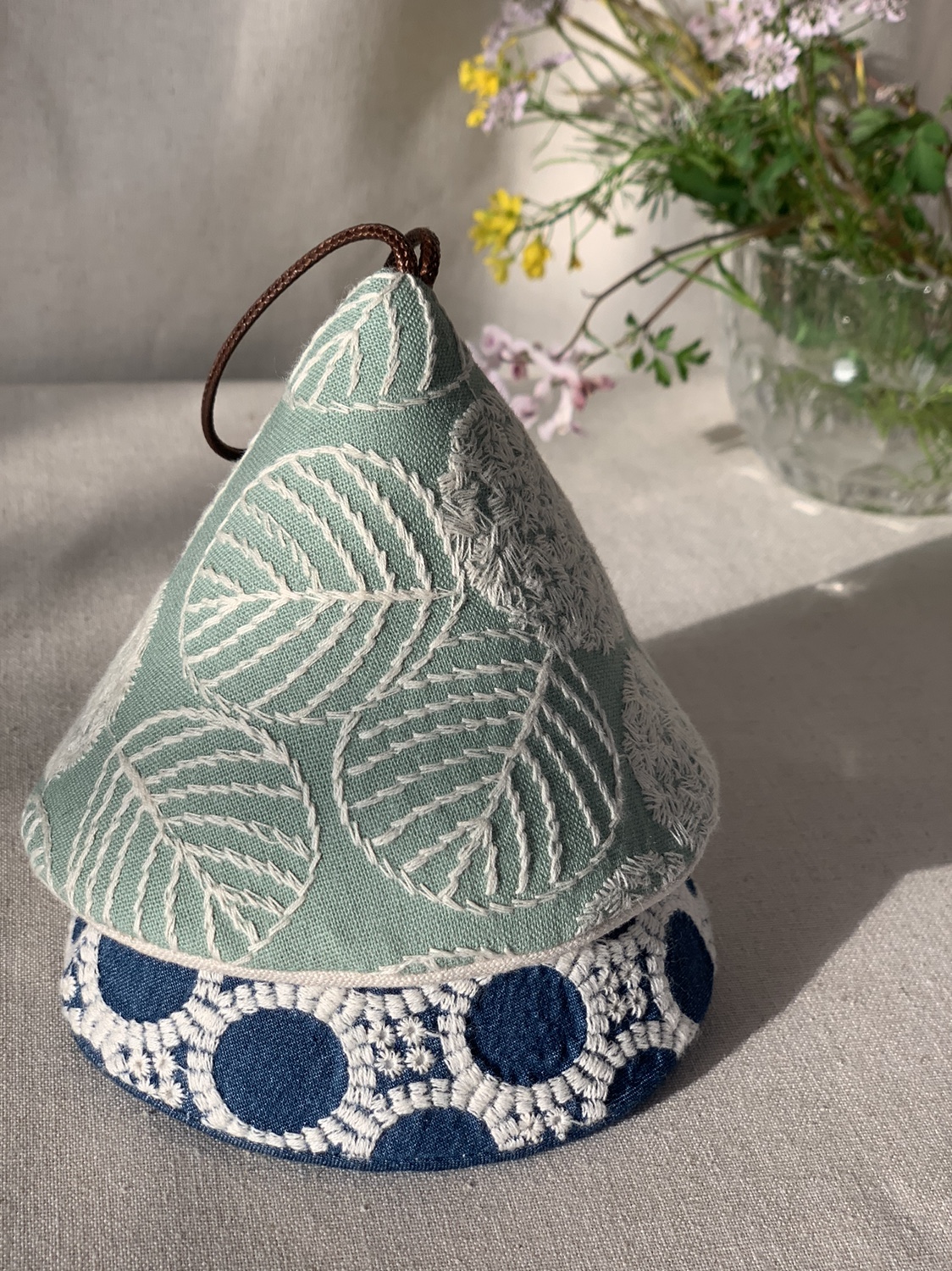 Treasures handmade custom cotton linen embroidery pan hat embroidered ball flower kitchen anti-burn triangle pan grip