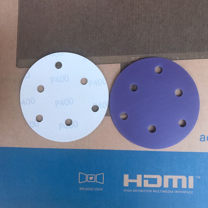 5 inch 6 hole dry frosted paper purple sand car batch soil pneumatic grinding purple ceramic super wear-resistant sandpaper non-stick ash