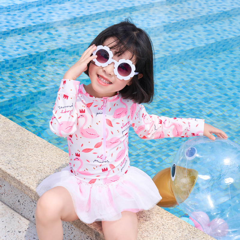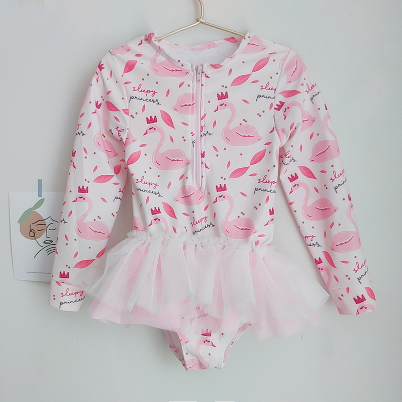 Children's swimsuit girl baby one-piece lace gauze Princess small child swimsuit long sleeve girl sunscreen swimsuit