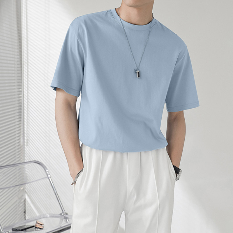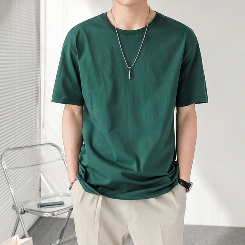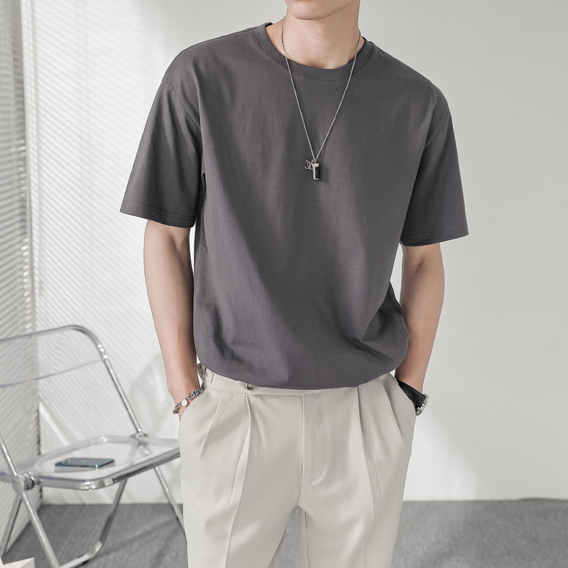Summer short sleeves T-shirt Men's Chains Tide Cards Round Collar Loose Shoulders Pure Color Casual 100 lap lightly cooked wind minimalist jersey