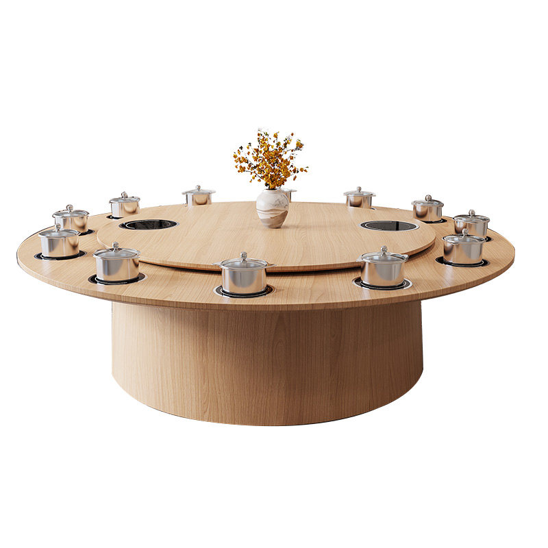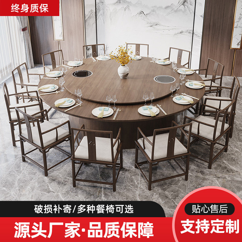Hotel small hot pot table Induction cooker integrated commercial hot pot restaurant dining table and chair combination Large round table Household restaurant