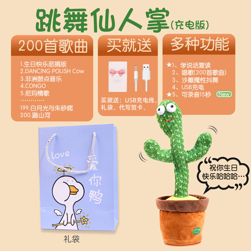 (Super Value Package) (Gift Bag Charging) Dancing Cactus Early Education Tumble Monkey (Gift Bag-Bluetooth Remote Control) Dancing Cactus (999 Early Education Bluetooth Learning to Talk) (Super Value Set