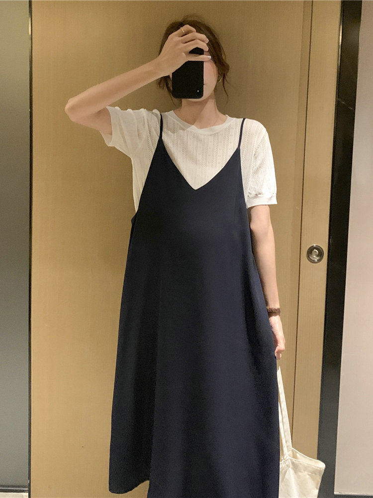 Single piece white T-shirt single piece blue pendant with skirt white T-shirt blue pendant with skirt