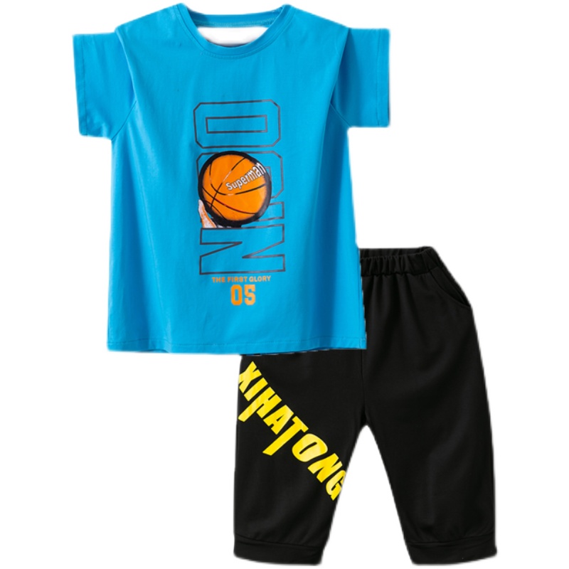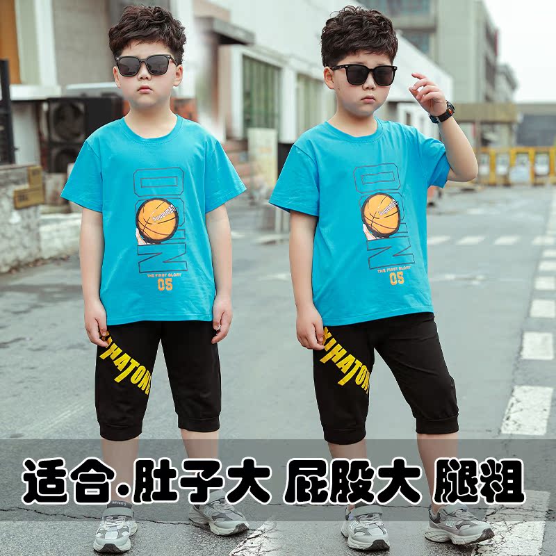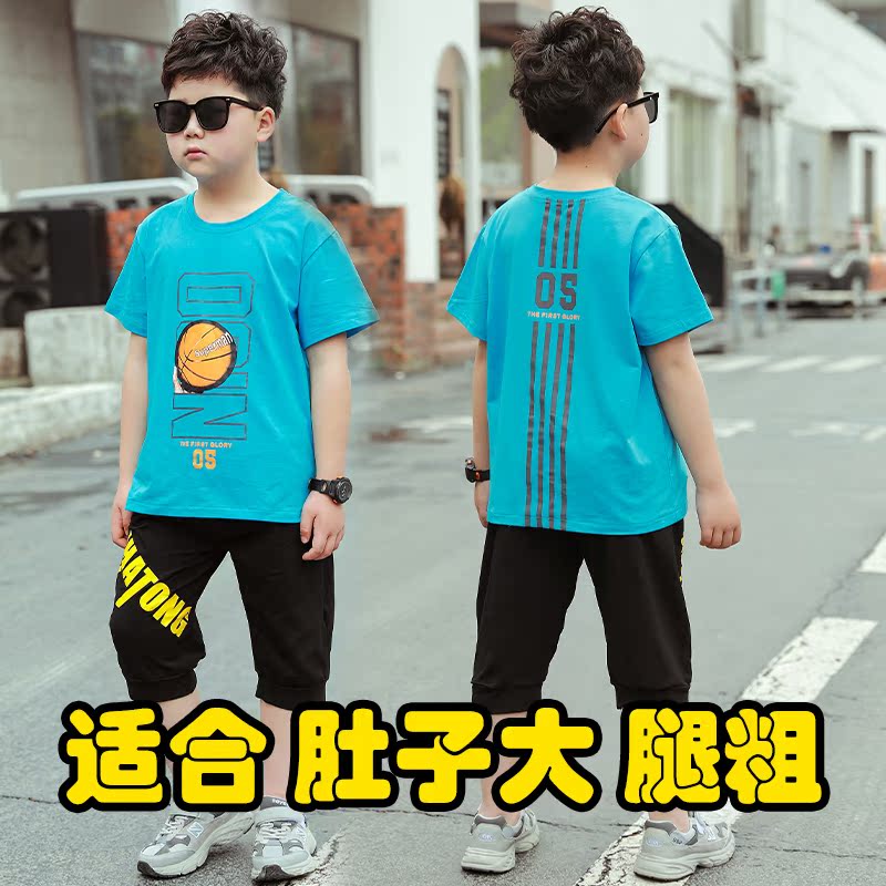 Fat boy's short sleeve suit with loose large size fat child T shirt 9 in the big child's 12 and half sleeve 15 two - piece sets