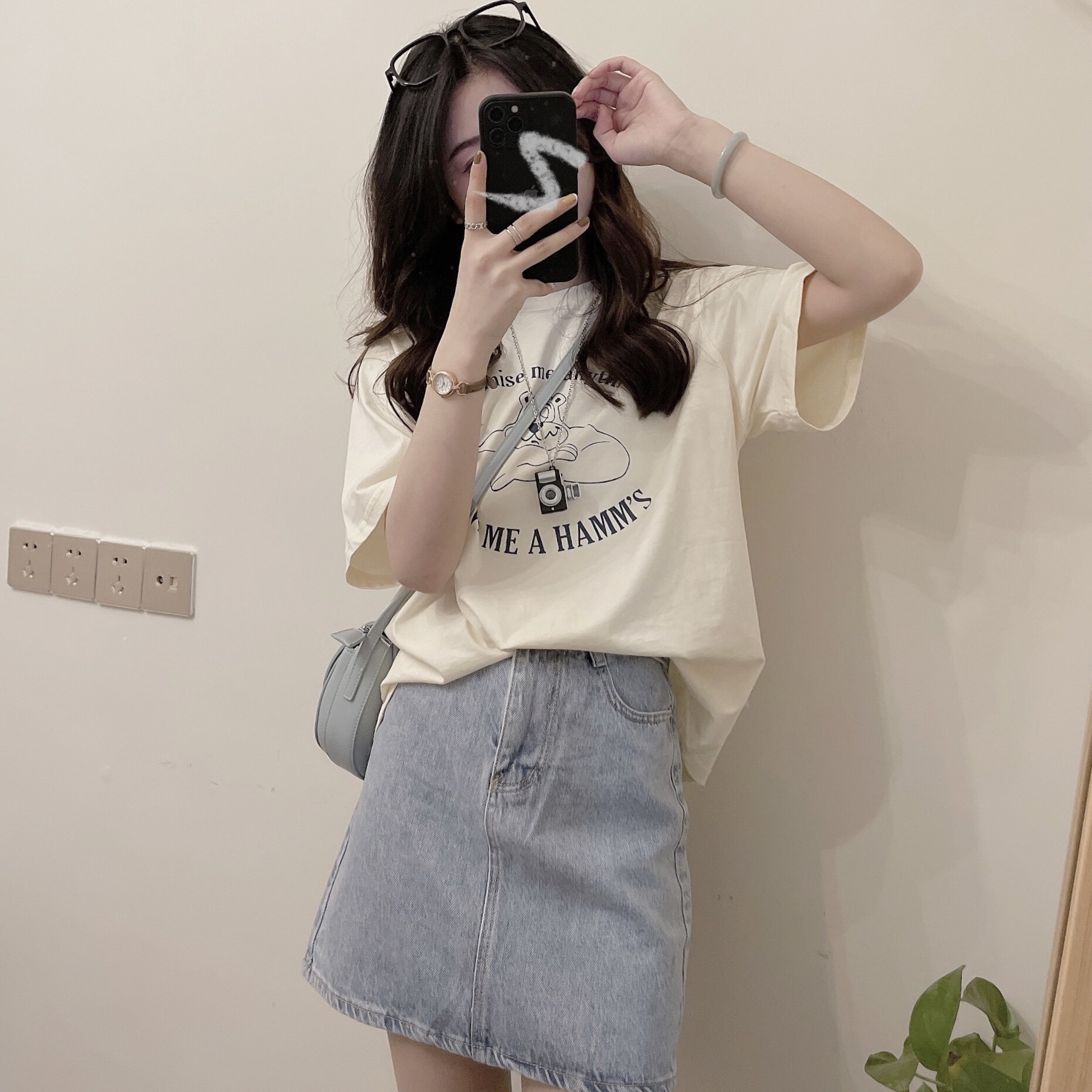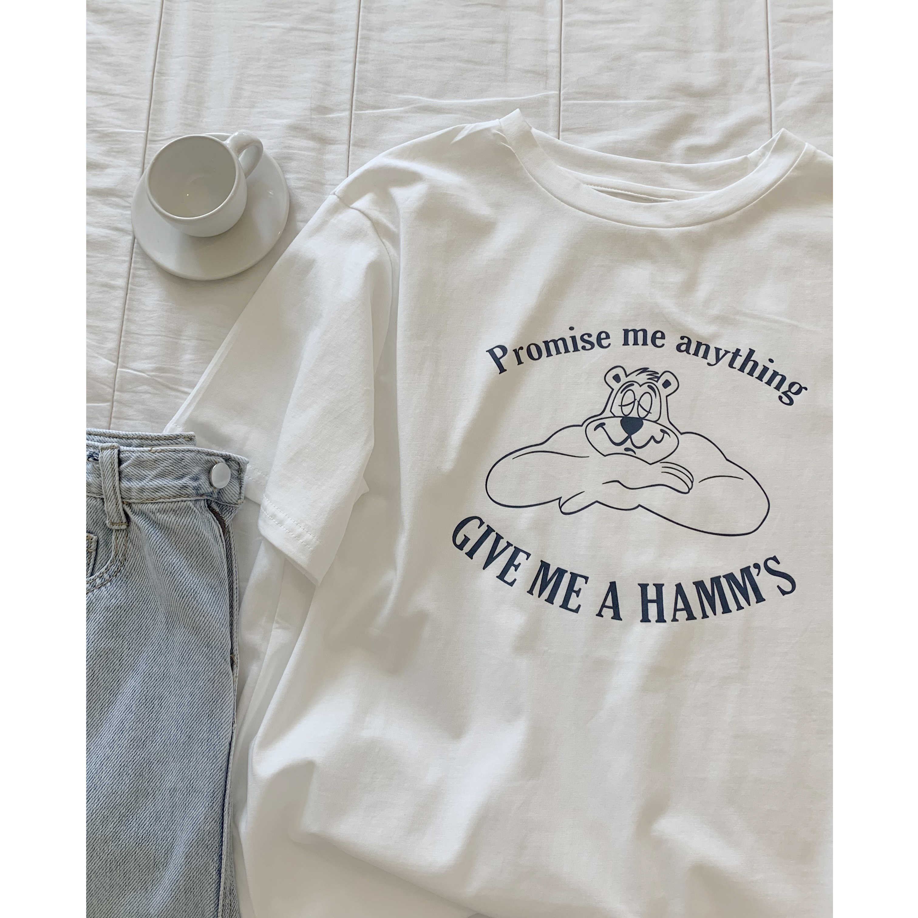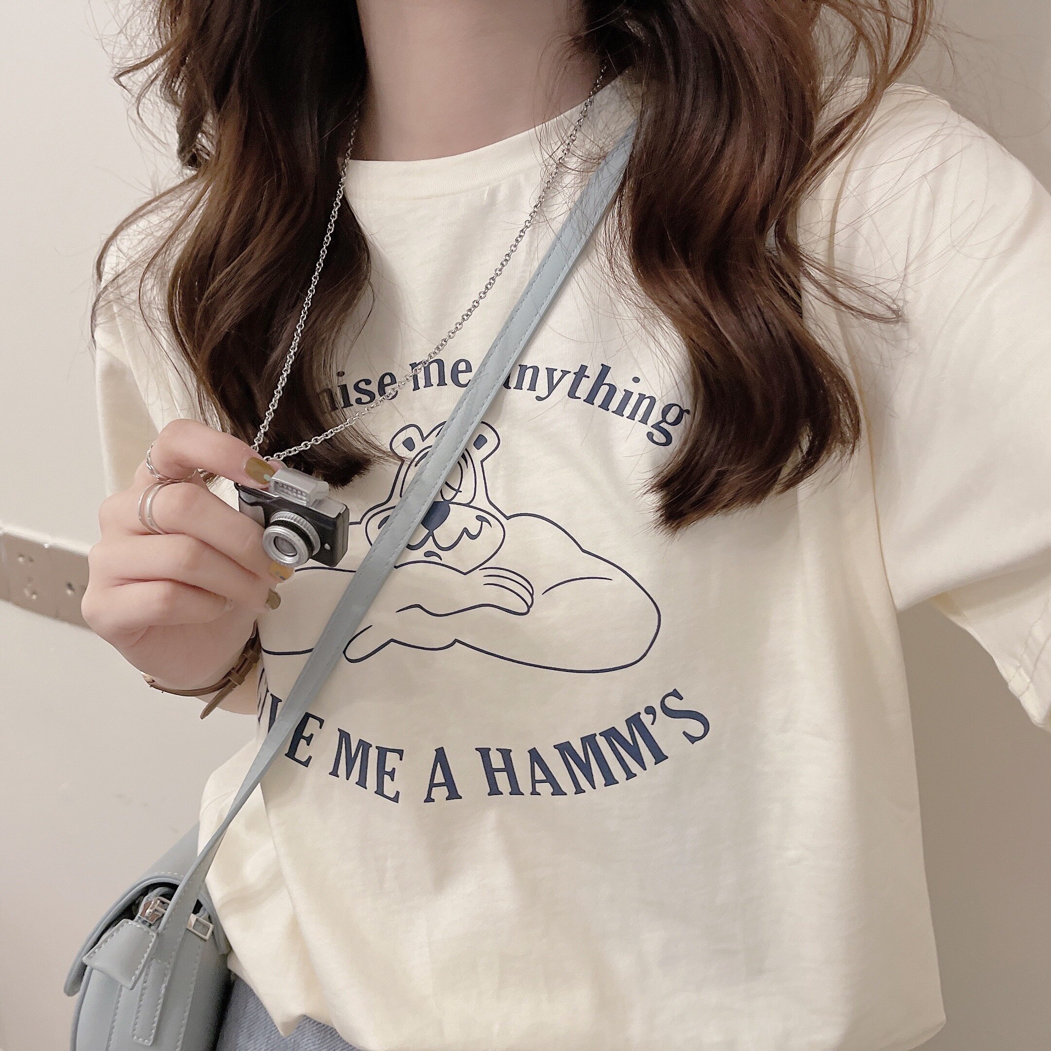 Spot] Missqiuqiu Autumn Home Homemade (Bear Bear) Round Collar Loose Milk Sugar Sweetened Cartoon T-shirt Short Sleeve