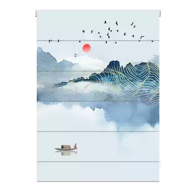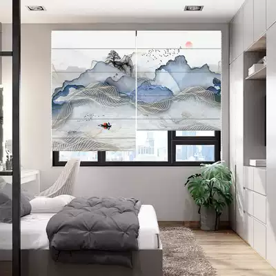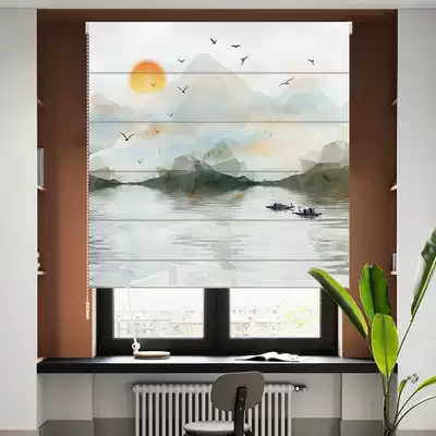 Misty time curtain Roman curtain light luxury landscape flowers and birds style living room study bedroom electric non-perforated roller curtain