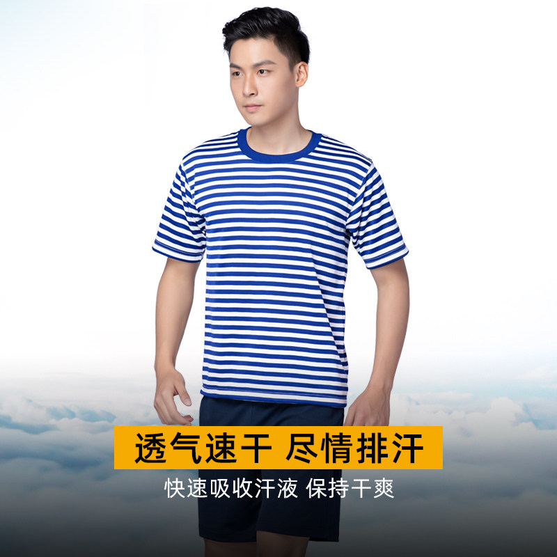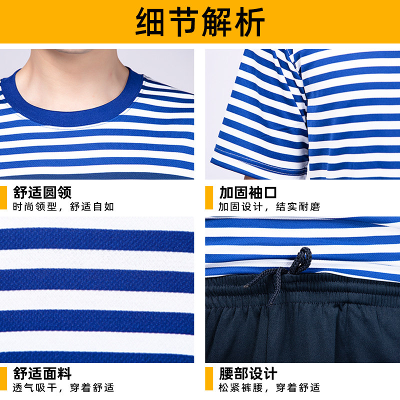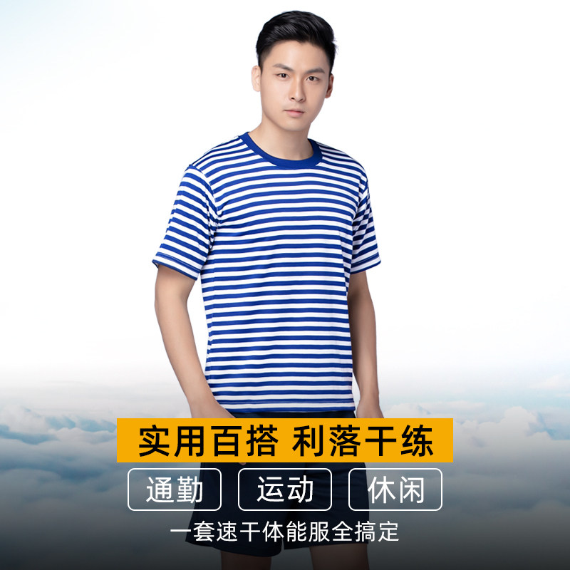 women's summer short sleeve body training shorts breathable dry blue and white striped t-shirt