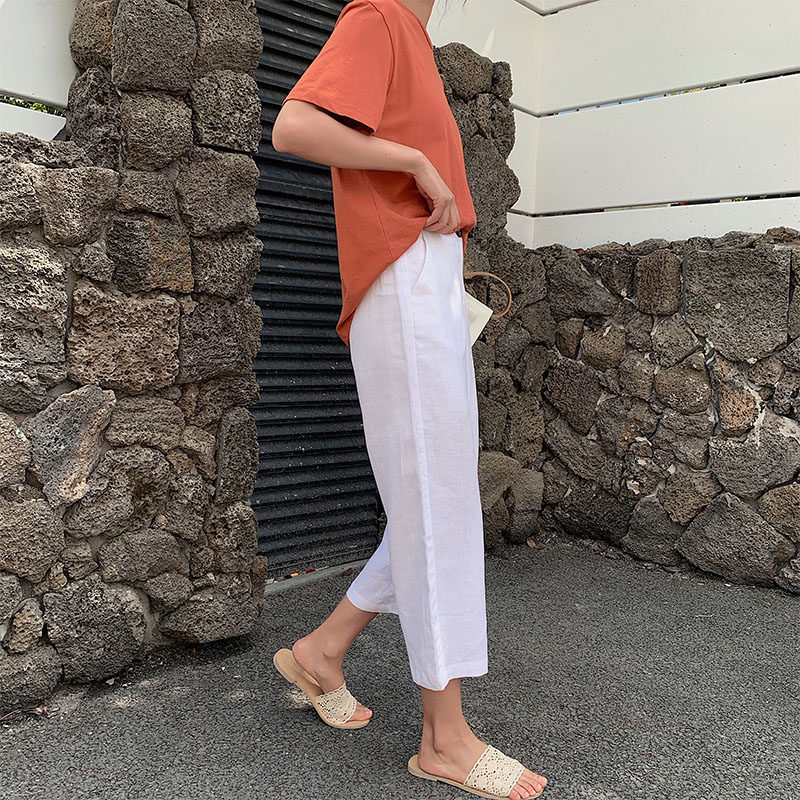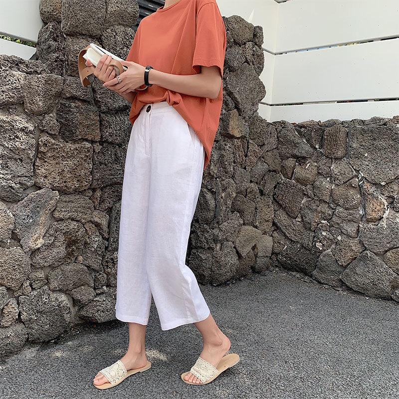 Linen wide trousers Korean version of the high waist nine-point pants are thin women's summer cotton linen casual loose straight nine-point pants tide