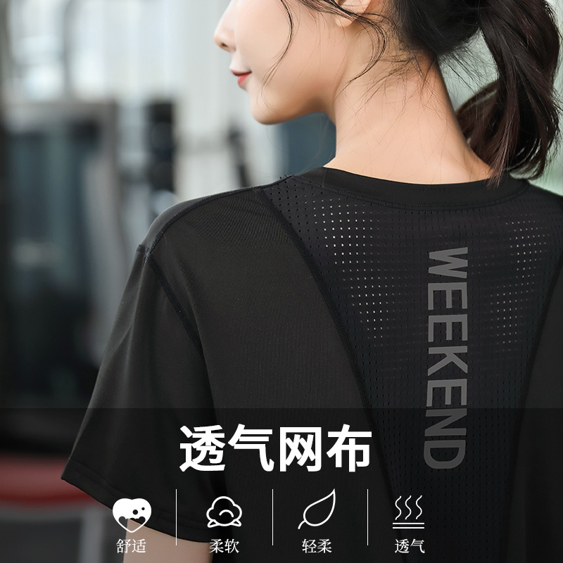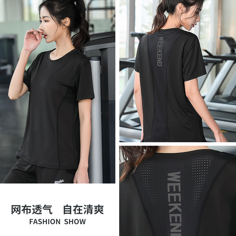 Large size yoga suit t-shirt top female fat mm sports fitness clothes short-sleeved loose morning running summer training 200 pounds