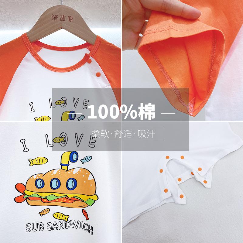 Baby summer outfit with short sleeves slim fit ice silk cotton loose Korean version climbing to wear khaclothes for toddler summer outfits