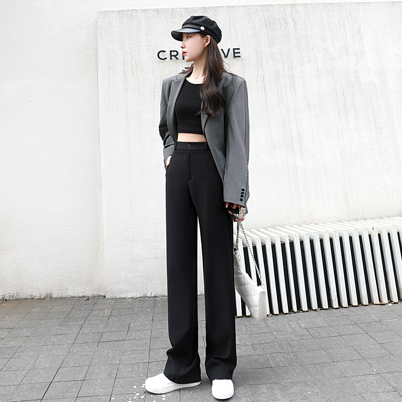 Suit pants women's spring, autumn and winter drape straight tube high waist slim black casual women's trousers trousers mopping wide-leg trousers