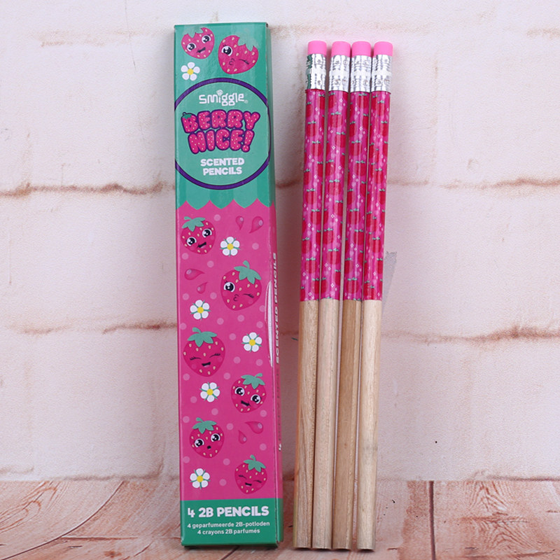 Australian smiggle students boys and girls pink strawberry scented rubber head 2B exam painting and writing pencil
