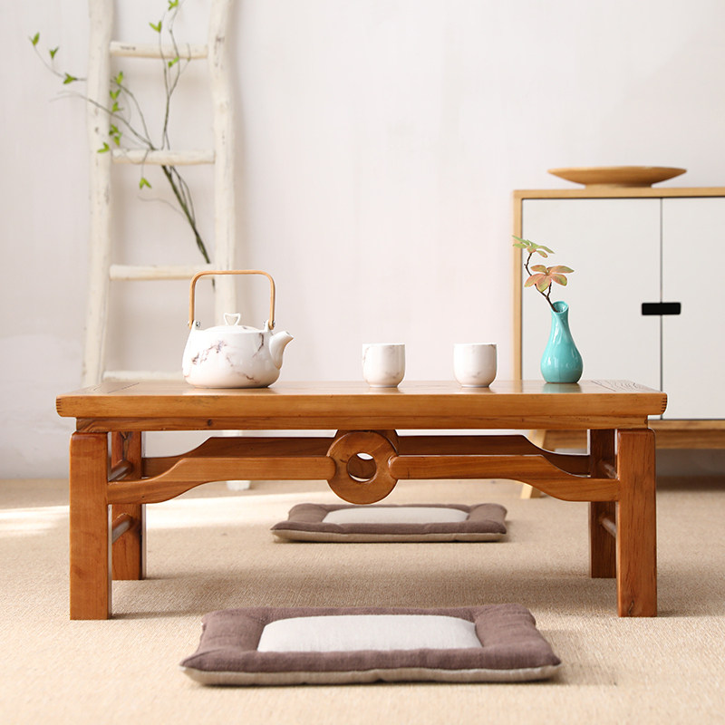 Floating window Small table New Chinese tatami Tatami Tea Table Old Elm Wood Folk Dining Room Table Solid Wood Minima Tea Room Sitting Ground Short Table