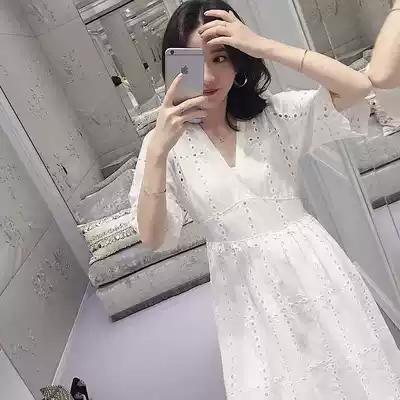 Pregnant Women summer dress dress 2021 new long version knee skirt summer hollow vneck short sleeve two-piece tide mother