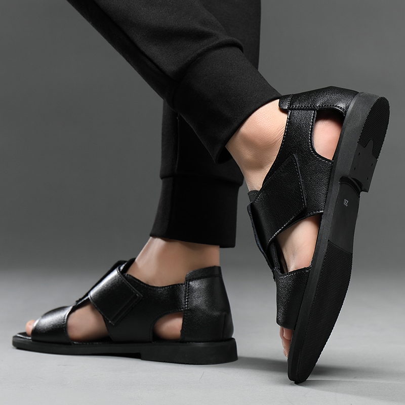 Di Luo Shark 2022 New Men's Summer Roman Sandals Men's Leather Personality Casual Leather Sandals Soft Sole Beach Shoes