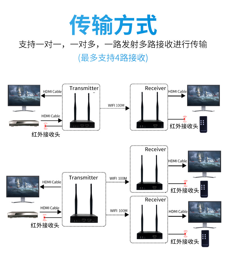 50 m HDMI transmitter (1 hair 1 collection of more than one collection) can be more for 1 1 pair of multi - -100 m wireless HDMI with usb transmitter able to wear wall-gain amplification -