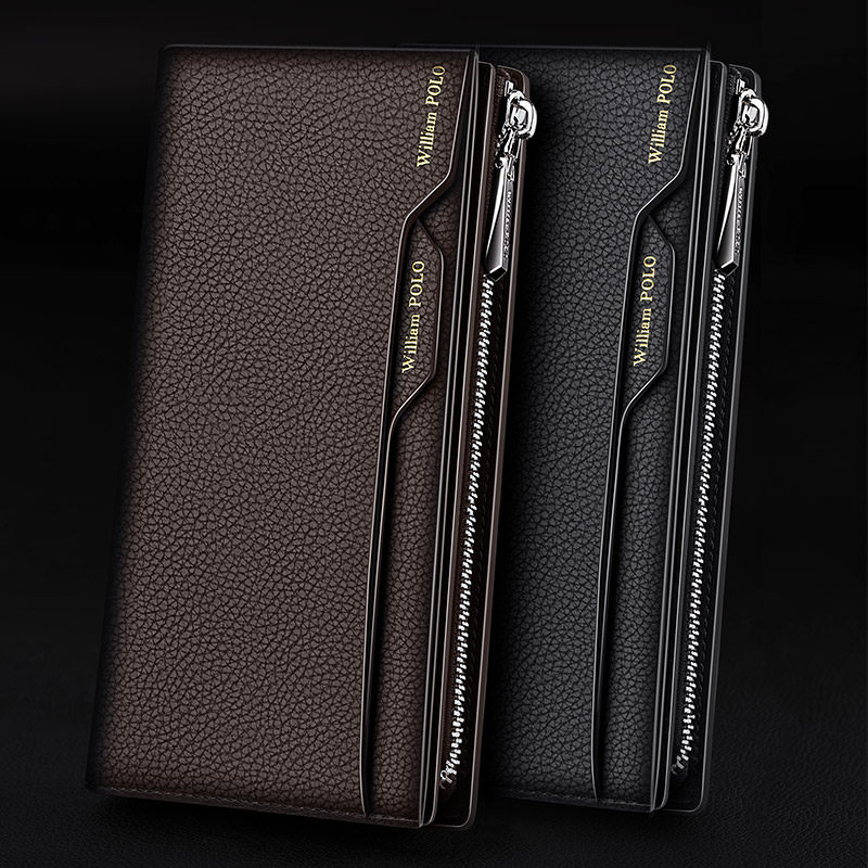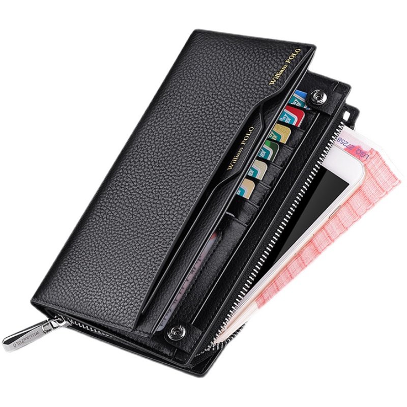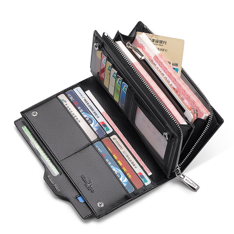 Youth Pure Color Long Version Wallet Men's Card Bag Laced Real Leather Multifunction Large Capacity Hand Grab Bag Theft Protection Refresh