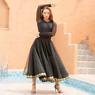 Half-body tutu large swing black long skirt He Gensha elastic belt inner pants Tango waltz 720 degrees