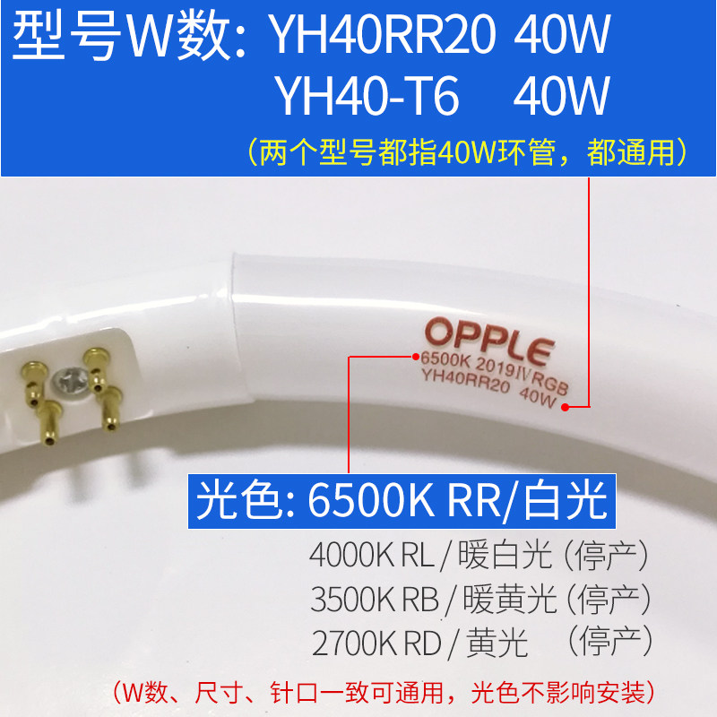 YH40RR 40W T6 Ring Pipe Oppo 40W Electronic Stabilizer Foshan Lighting If the new lighting tube is still not lit, the stabilizer needs to be replaced Note
