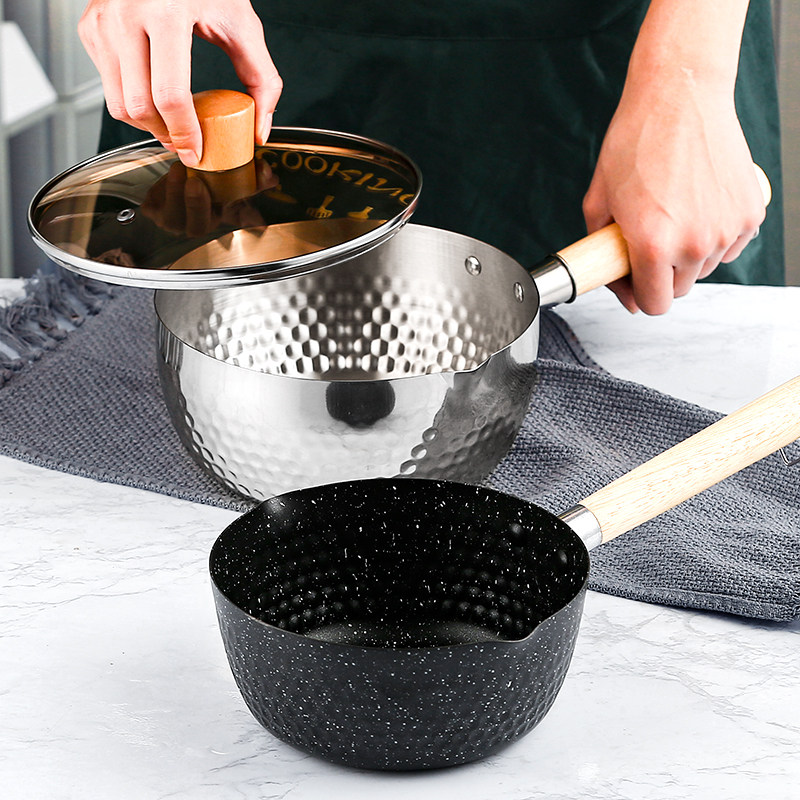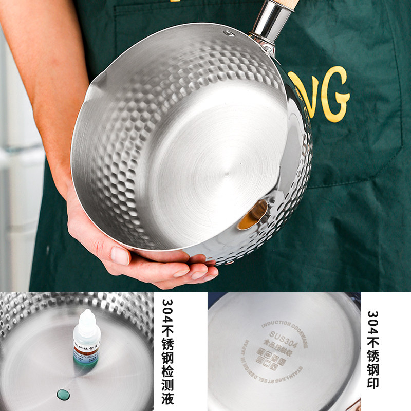 304 stainless steel with lid snowflat pan household food grade baby milk pan soup powder porridge pan with non-stick pan-Taobao