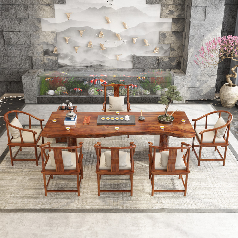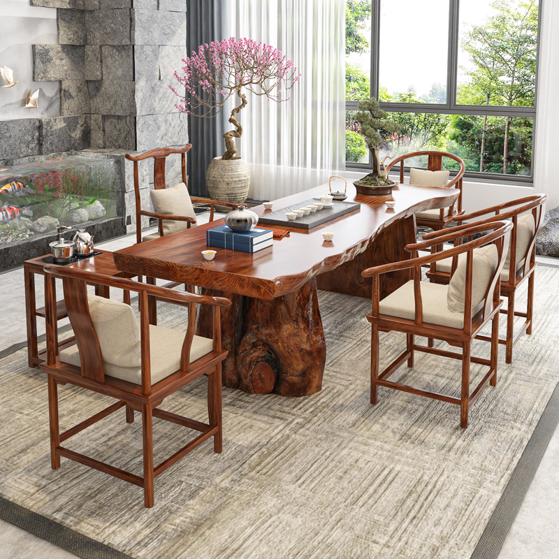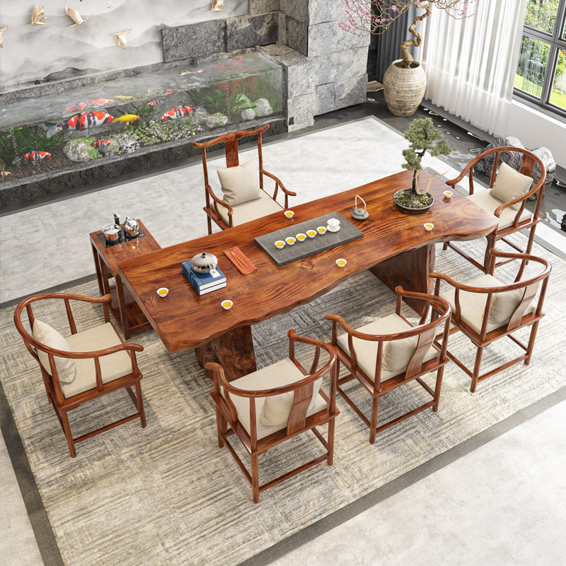 New Chinese solid wood tea Combined Gongfu tea Several chairs Living room Tea table Large plate 1 m 8 Tea table Table Paint Technique