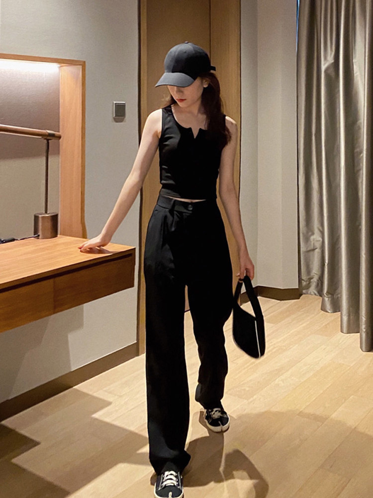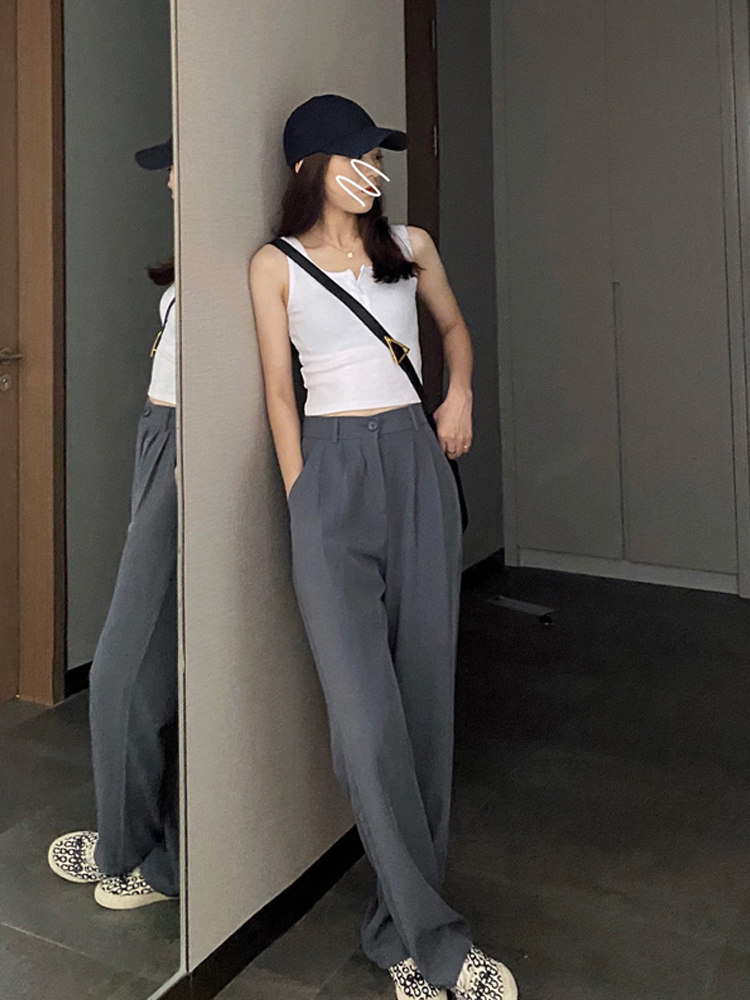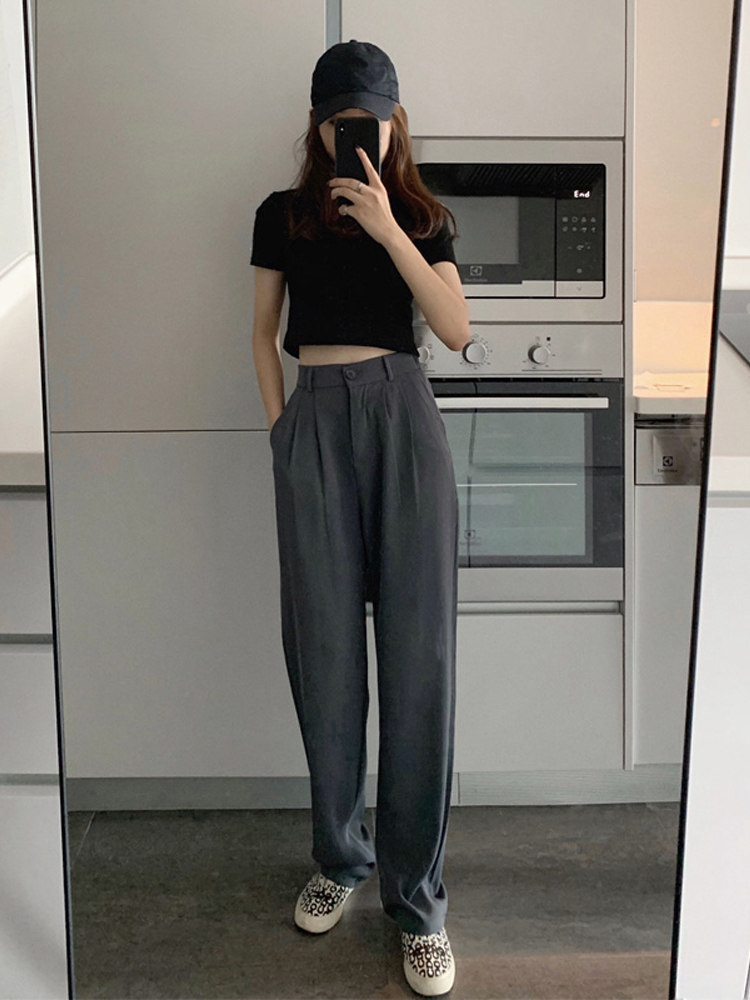 grid studio suit pants women's spring and summer small tall waist was tall, thin and drooping loose straight casual pants