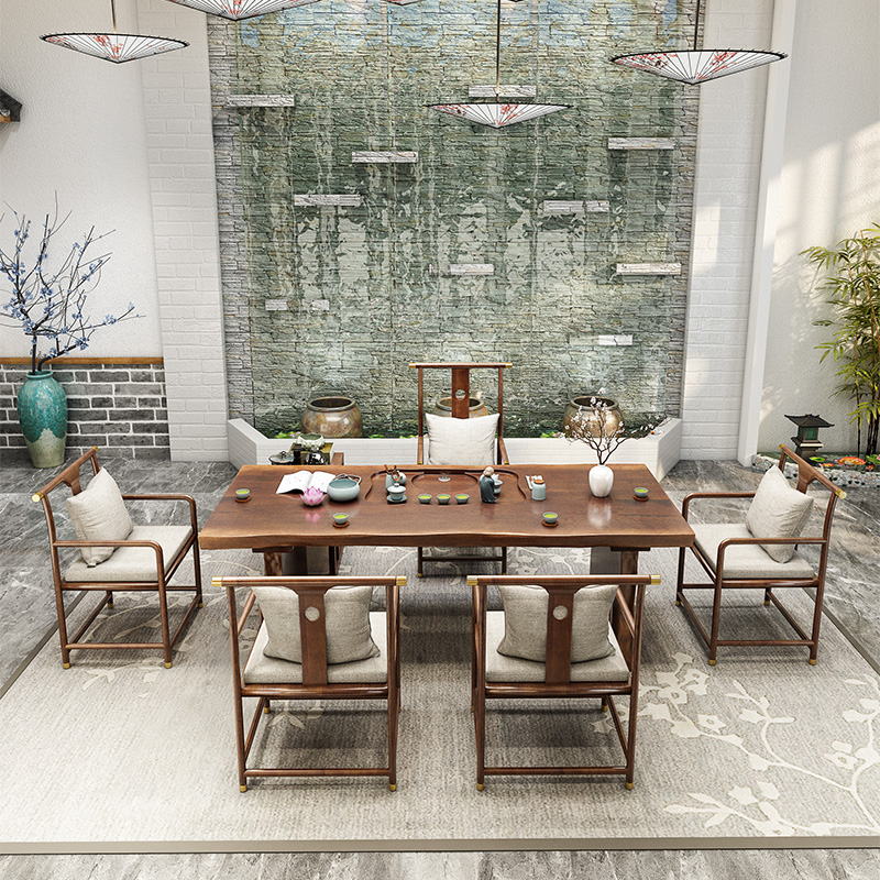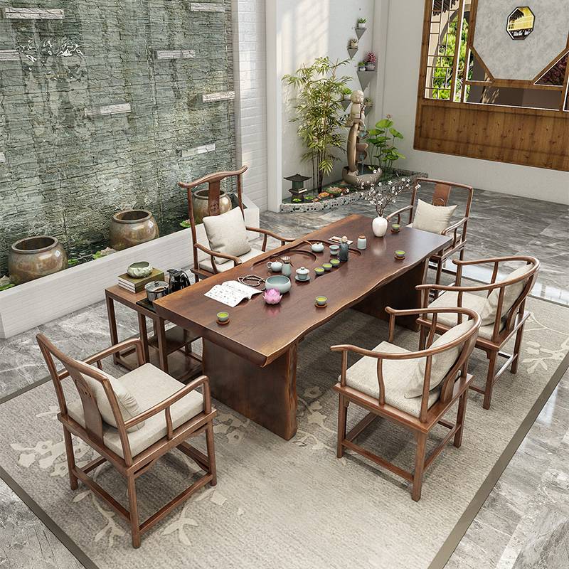 Solid wood board tea table and chair combined new Chinese tea table retro tea disk office 1 m 8 solid wood log tea table