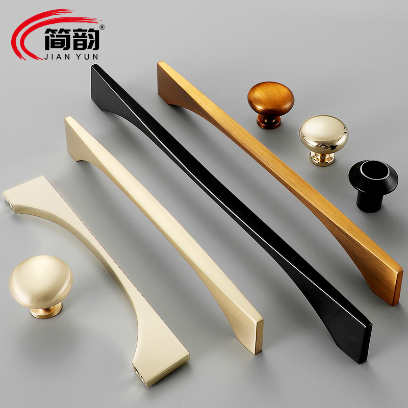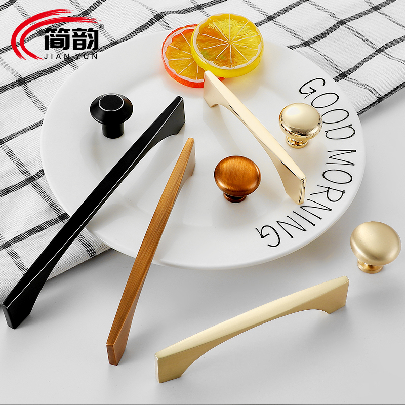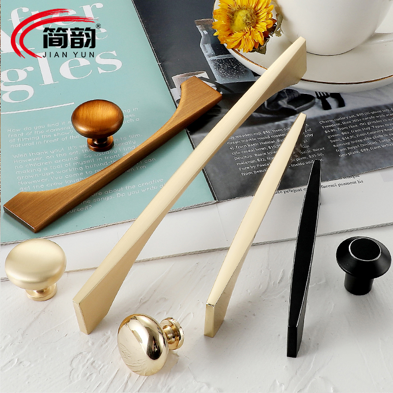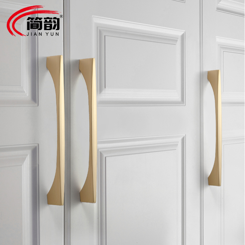 American cabinet door yellow bronze overall cabinet Nordic simple modern gold light luxury bright gold wardrobe door handle drawer handle