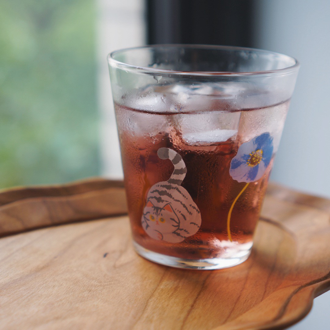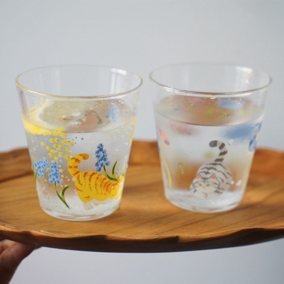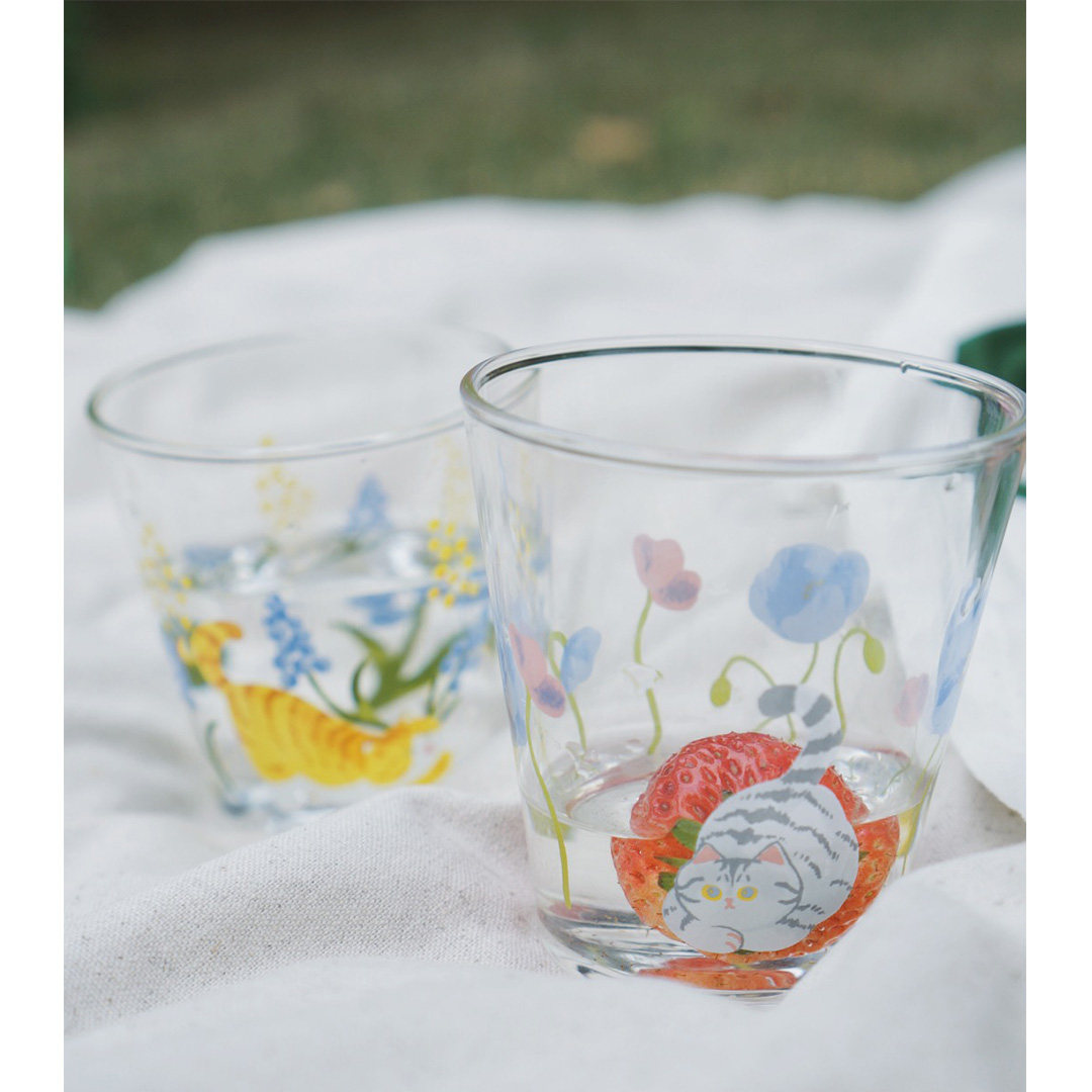Miaoji MEWJI original cute illustration cute glass juice cup water cup cat and flower printing theme gift