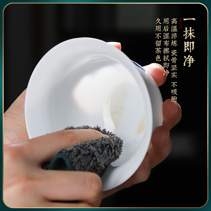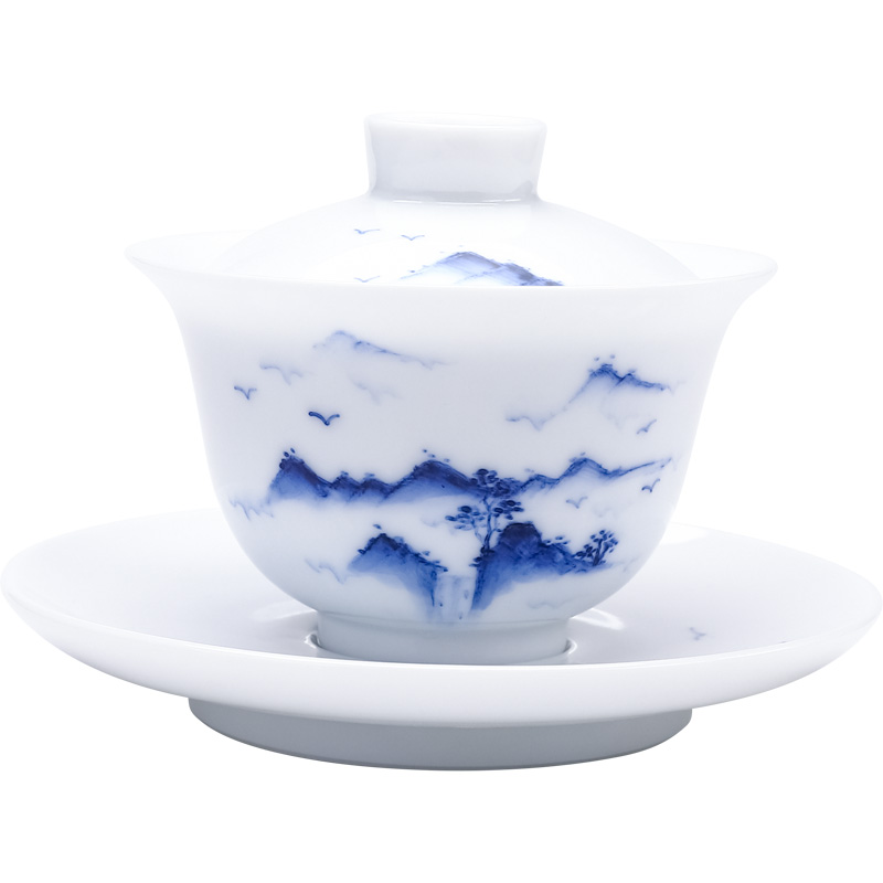 Kung Fu tea three talents cover bowl tea cup single high-end hand-painted landscape blue and white porcelain tea set hovering Dehua white porcelain gift box