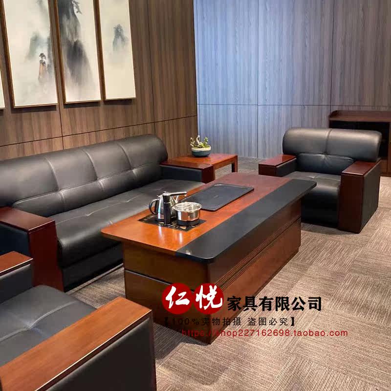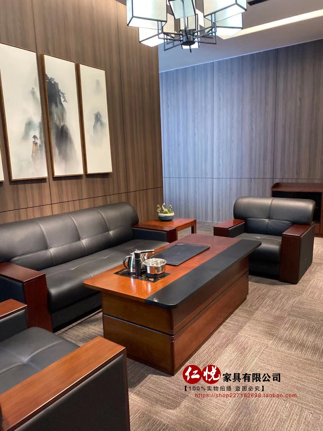 Office sofa solid wood tea table combination set leather simple modern 1 1 3 business reception