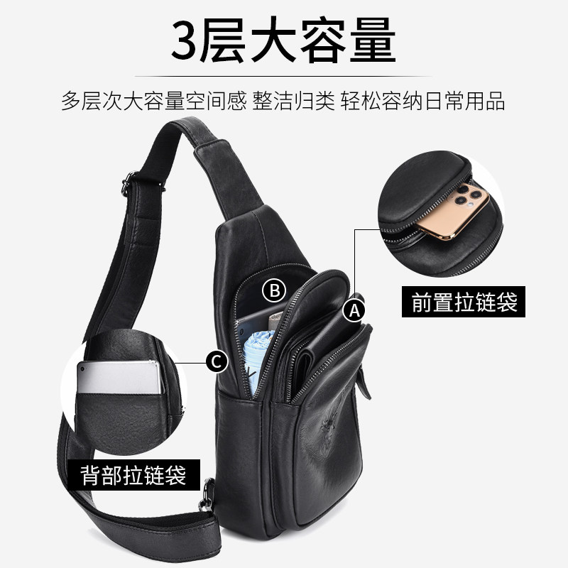 Chest Bag Men Genuine Leather Men's Head Layer Cow Leather Single Shoulder Diagonal Satchel Fashion Casual Chest front Shoulder Bag Hanging Bag Large Capacity Tide