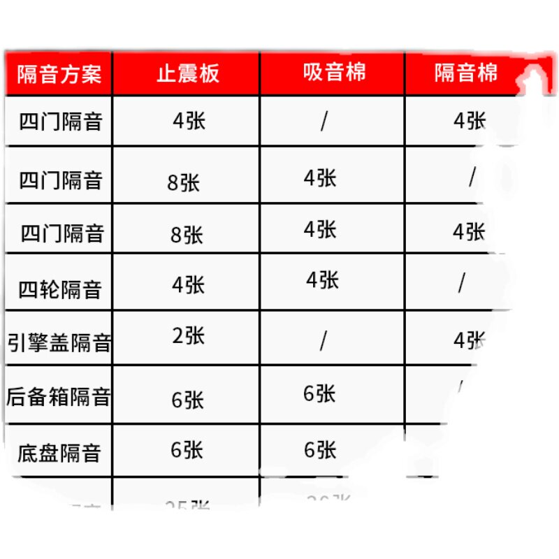 Gold aluminum shock absorbing plate 46-320 cm One gold aluminum shock absorbing plate 46-80 cm One high-density black sound-absorbing cotton 50-80 One high-density black sound-absorbing cotton 50-80 Four cars