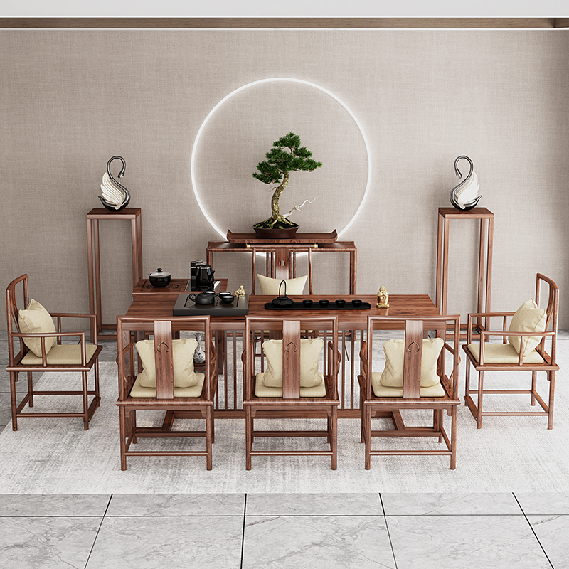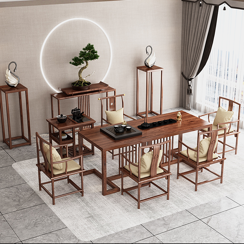New Chinese Zen Tea Table Tea Table of tea Living room Home Gongfu Tea Several tea table chairs Composition minimalist modern elm tea table