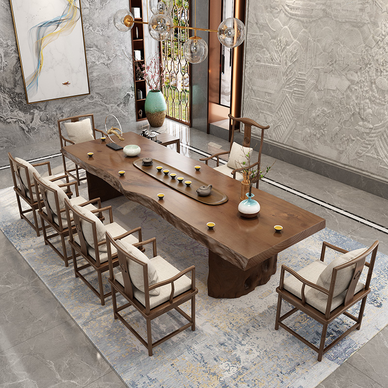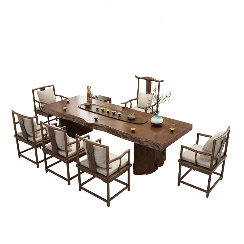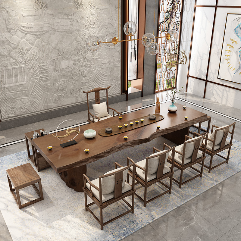 New Chinese style log large board tea table and chair combination Kung Fu Zen solid wood coffee table office tea table drinking tea tea table