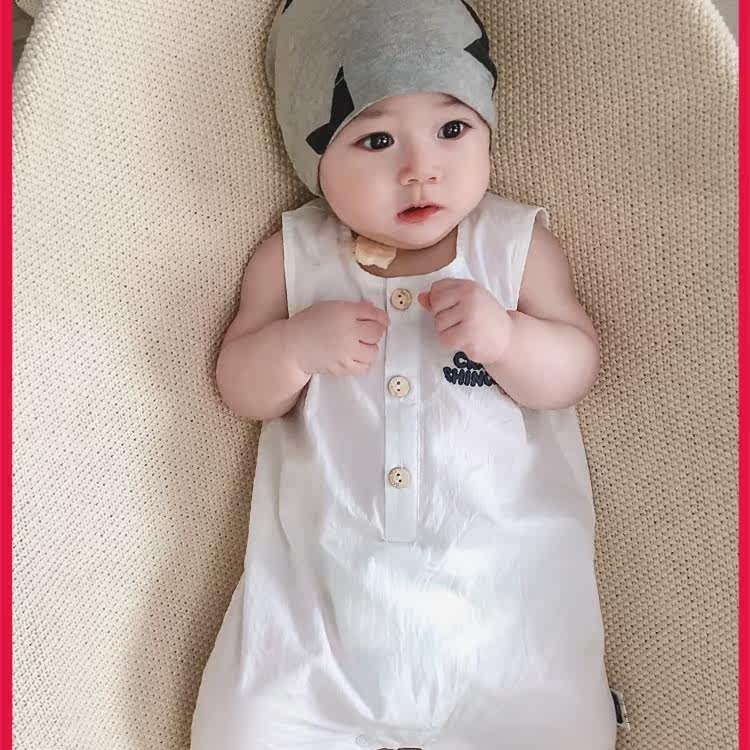 British next kid baby clothes summer thin jumpsuit newborn sleeveless romper summer clothes baby crawling clothes