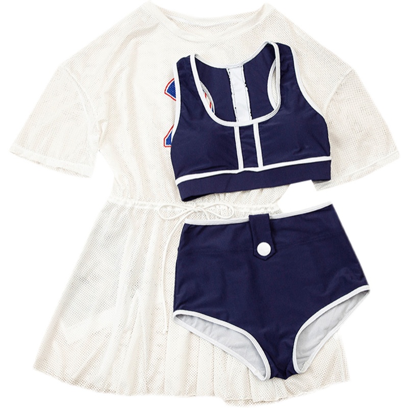 Swimsuit women sports Wind loose Two-piece three sets of conservative students slim-breasted sunscreen swimming suit