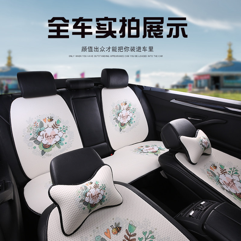 Linen style loveyou seven-piece car set free neck pillow ice silk style loveyou full car seven-piece set free neck pillow linen style-hello Rabbit full car seven-piece set free neck pillow ice silk style-he