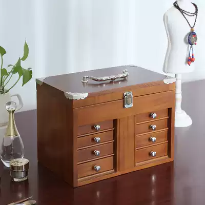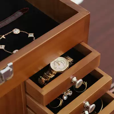 Jewelry box storage box earrings earrings necklace multi-layer small exquisite watch Storage artifact solid wood vintage home