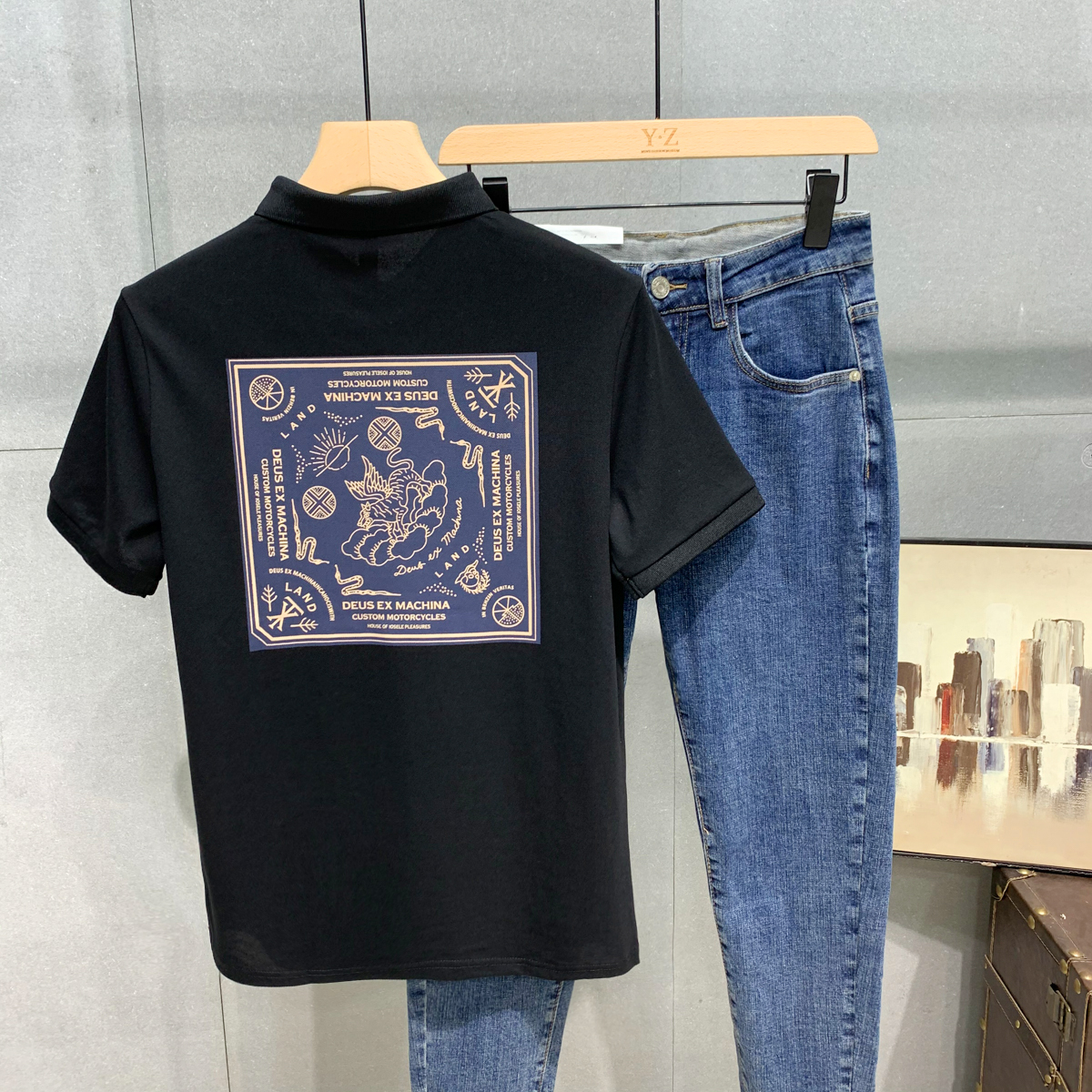 Summer trend printing Polo shirt men's short-sleeved T-shirt trendy men's all-match comfortable lapel T-shirt men's fashion polo shirt