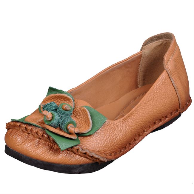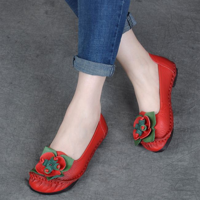 High - grade flowers hand - made vintage single shoes national wind women shoes 2018 new leather soft solid flat leather shoes autumn mother