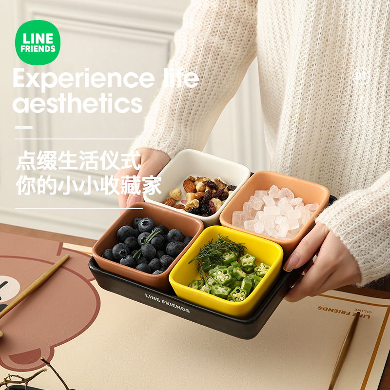 LINE FRIENDS ceramic spit bone dish household dip dish snack dish hot pot ingredients dish soy sauce dish vinegar dish