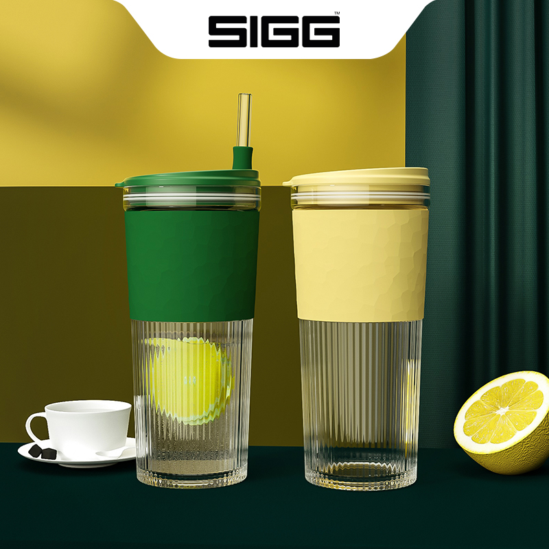 sigg glass straw water cup girl simple portable retro tea cup large-capacity coffee cup anti-scald male