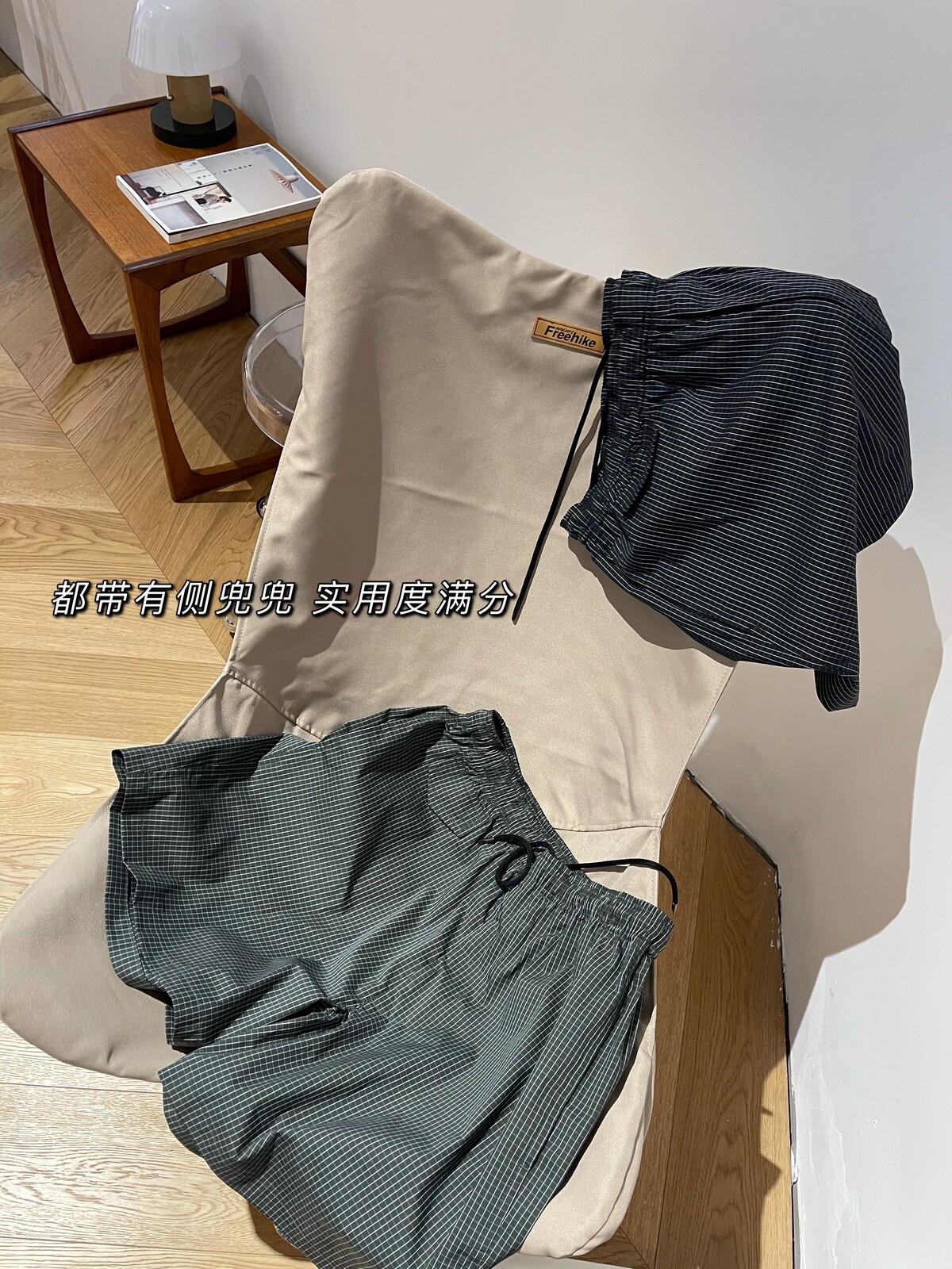 KC "C Series" Japanese fashionable ultra-lightweight high-end black label men's and women's elastic waist plaid shorts